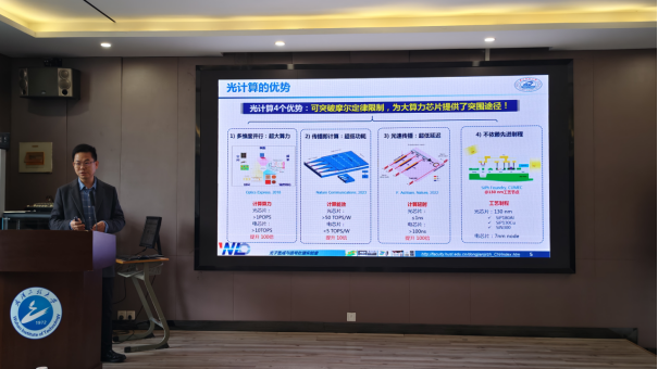 本次报告聚焦光电智能计算这一交叉前沿领域,不仅深入解析了光子神经网络的核心机制,也展示了其在人工智能领域的广泛应用潜力,为学院师生在光电芯片与智能系统方向的研究开辟了新视野,进一步推动了武汉工程大学与华中科技大学在光电信息领域的深度交流与合作。